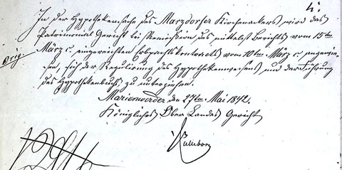 - 10Verhandelt Marzdorf, 10. März 1842. In: A. a. O., Blatt 10 RS.