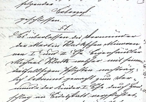 In der zweiten Verhandlung zur Erbregelung, die am 11. Oktober 1853 in Märkisch Friedland stattfand, schlugen die beiden Vormünder Michael Kluck und Johann Neumann vor, der Witwe den Nachlass zum reduzierten Annahmepreis von 1200 Taler zu überlassen.48Erbrezess vom 11. Oktober 1853. In: A. a. O., Blatt 41 RS. Zur Begründung führten sie aus: