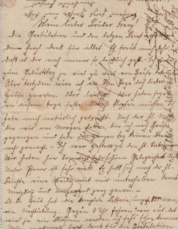 »Ich war gestern zu dem Hl. Sakrament. Wir haben hier Sonntags sehr schöne Gelegenheit dazu. Unser Pfarrer ist sehr nett. Er hat sich nach der Hl. Beichte eine Weile mit mir unterhalten. Kennt Marzdorf und Umgegend ganz genau.«