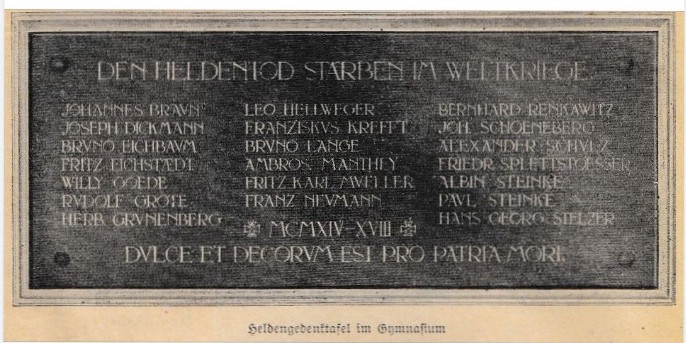 Der Namen von Franz Neumann war bis 1945 auf einen Gedenktafel zu finden, die mit der patriotischen Horaz-Phrase »Dulce et decorum est pro patria mori« (Süß und ehrenvoll ist es für das Vaterland zu sterben) versehen im Deutsch Kroner Gymnasium angebracht war.