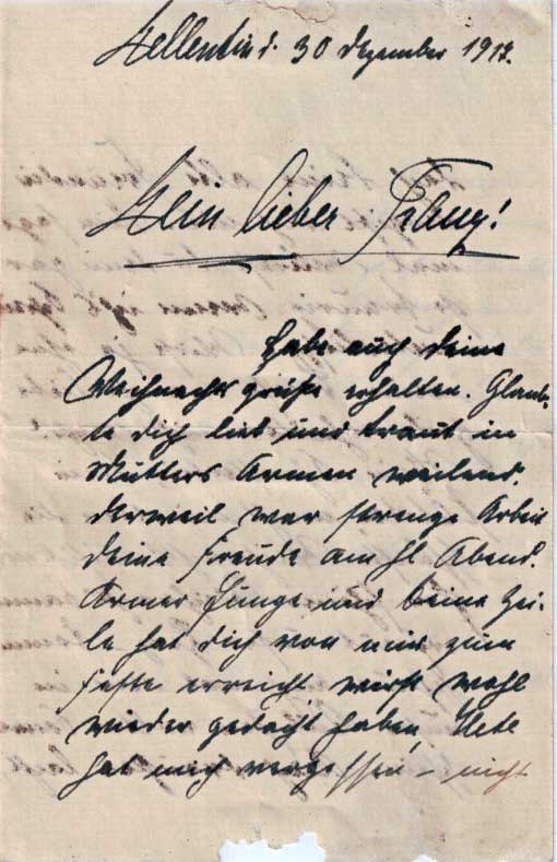 »Glaubte dich lieb und traut in Mutters Armen weilend. Derweil war strenge Arbeit deine Freude am Hl. Abend. Armer Junge und keine Zeile hat dich von uns zum Feste erreicht, wirst wohl wieder gedacht haben, Hete hat mich vergessen – nicht doch, deine alte Freundin vergißt dich nie.«
