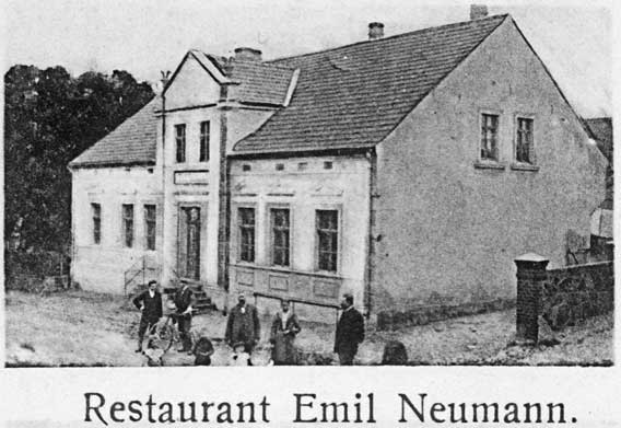 Der Gastwirt Emil Neumann war bereits im Jahr 1910 in Marzdorf verstorben.5Schreiben des stellvertretenden Standesbeamten Schwoncke vom 2. Oktober 1919. In: Akta zgonów żołnierzy, S. 524. Seit seinem Tod führte die Witwe allein das sogenannte Restaurant Neumann, das die renommiertere der beiden Gaststätten im Dorf war.